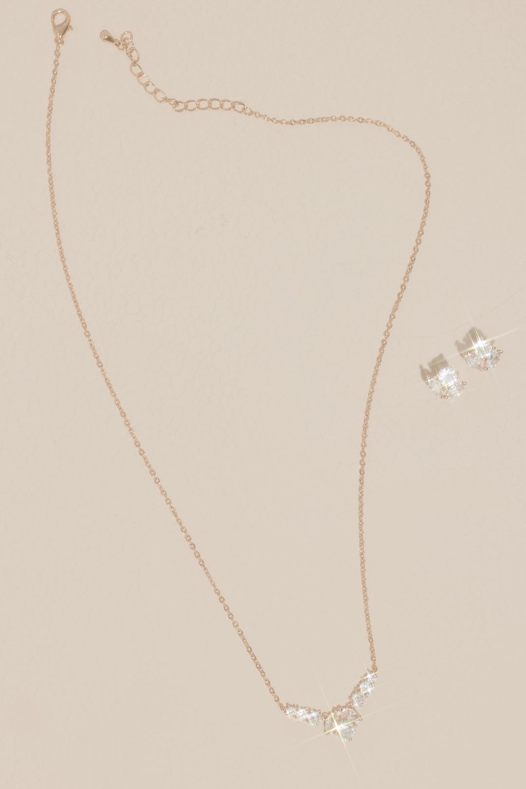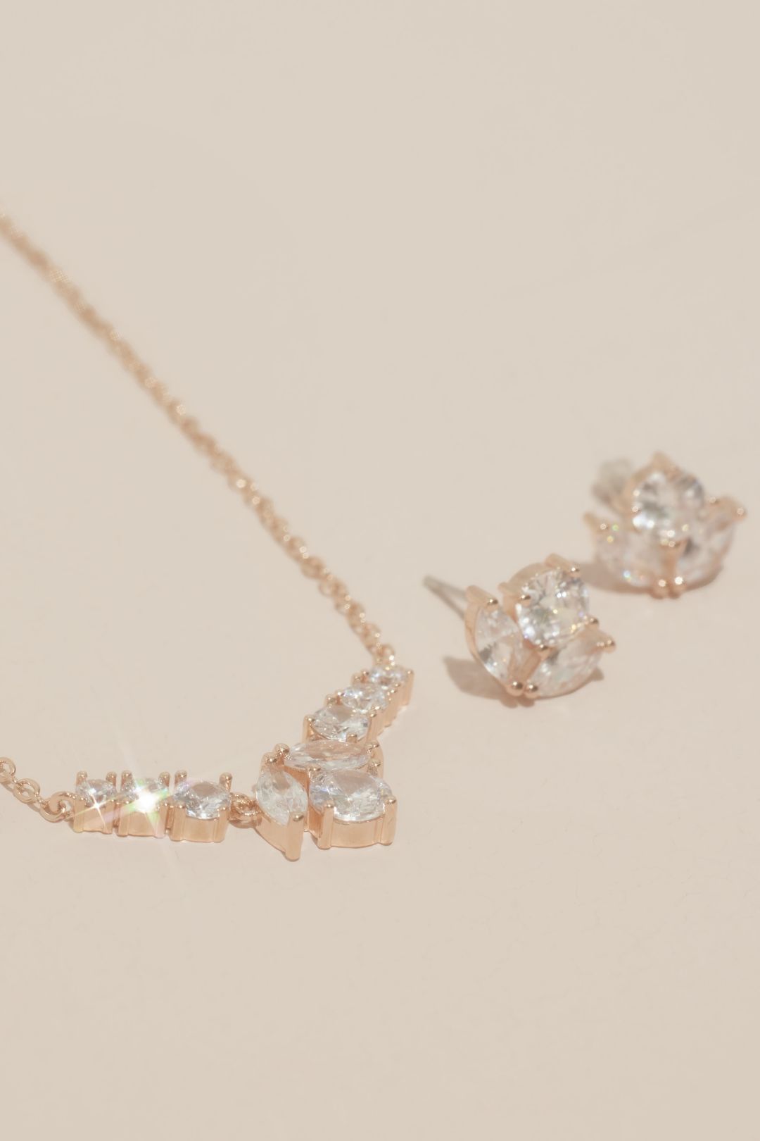 Detallado con brillantes cristales, este set de joyería a juego presenta un collar y aretes, cada uno con gemas redondas que forman capullos de rosas florecientes.