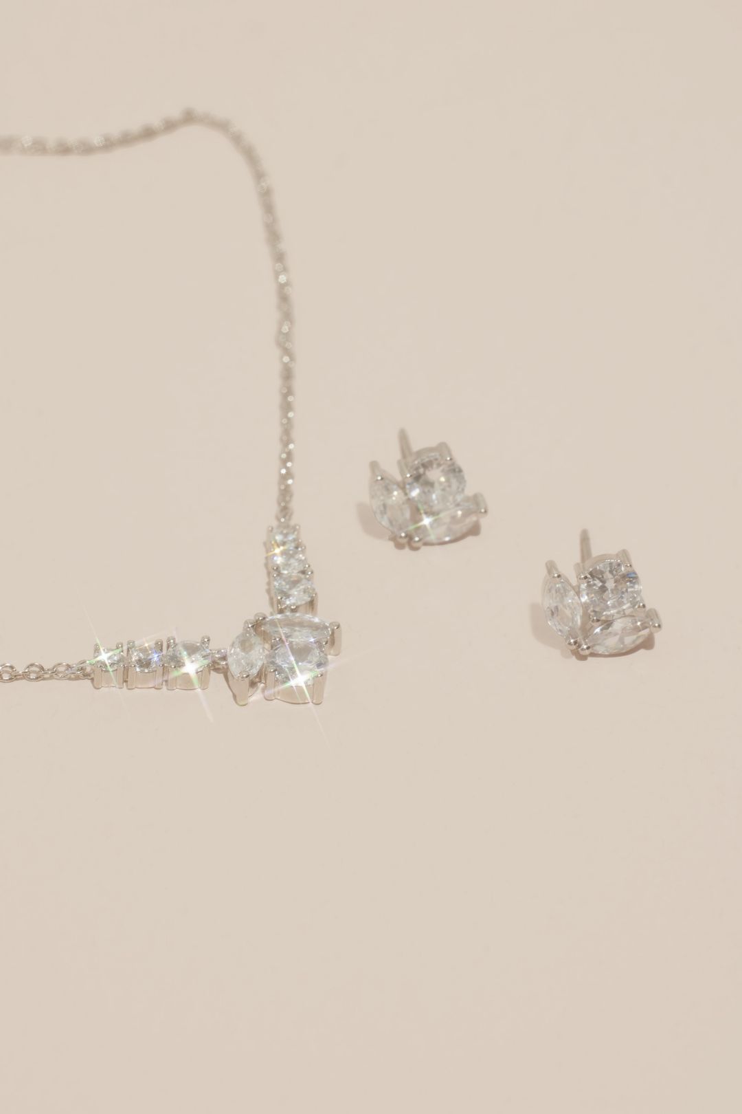 Detallado con brillantes cristales, este set de joyería a juego presenta un collar y aretes, cada uno con gemas redondas que forman capullos de rosas florecientes.