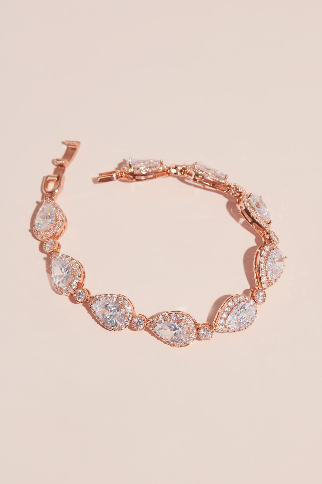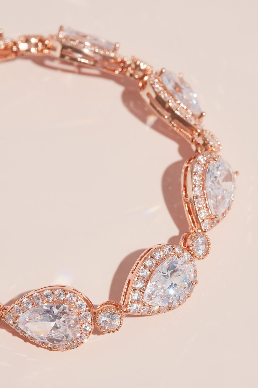 Sola o combinada con otras pulseras, este accesorio cuenta con grandes piedras en forma de gotas acentuadas con un halo de cristales. Cada gota se separa con un cristal solitario.