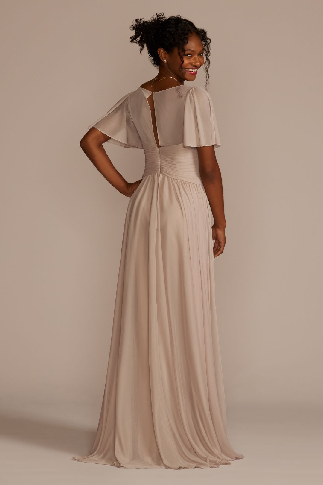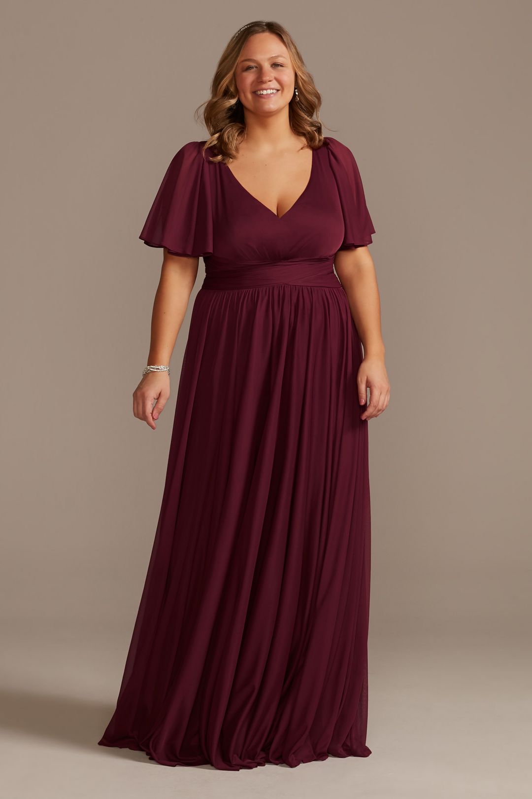 ¡Luce encantadora con este hermoso vestido de dama! Su delicado escote en V y falda en línea A de chifón, se complementan perfecto con unas mangas de mesh y plisado en cintura. Lucirás increíble.