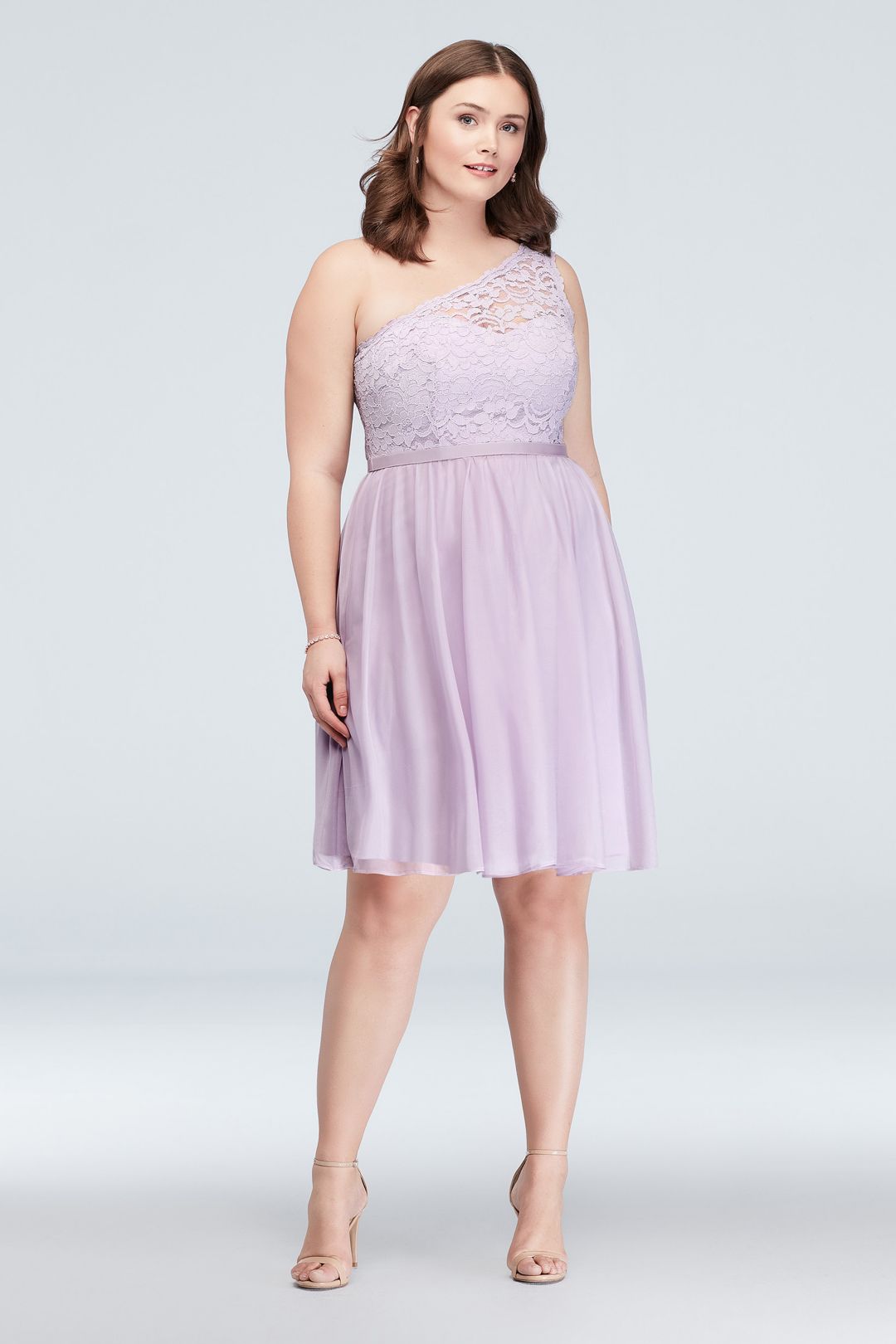 ¡Luce espectacular con este hermoso vestido de dama corto! Su escote asimétrico de encaje y falda en línea A, te hará marcar tendencia en ese gran evento.