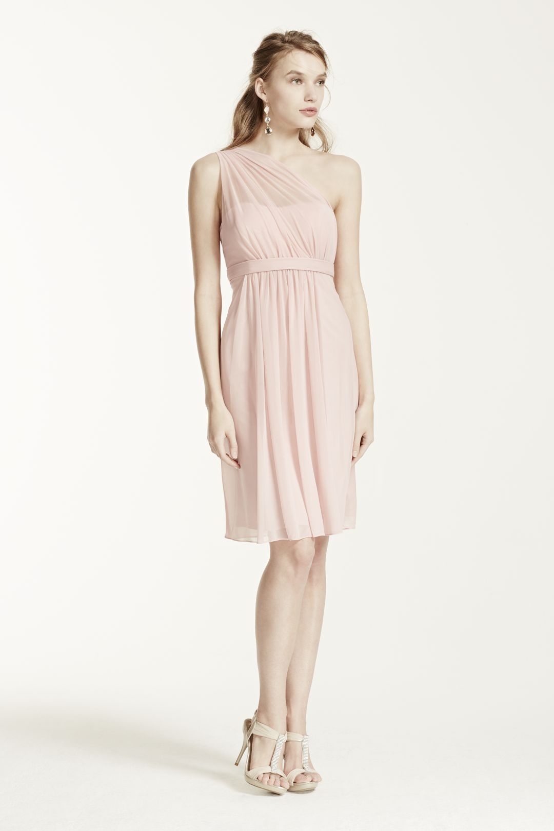 ¡Este hermoso vestido de dama corto te encantará! Su escote asimétrico en tul, se complementa perfecto con linda falda en línea A que favorecerá tu silueta.
