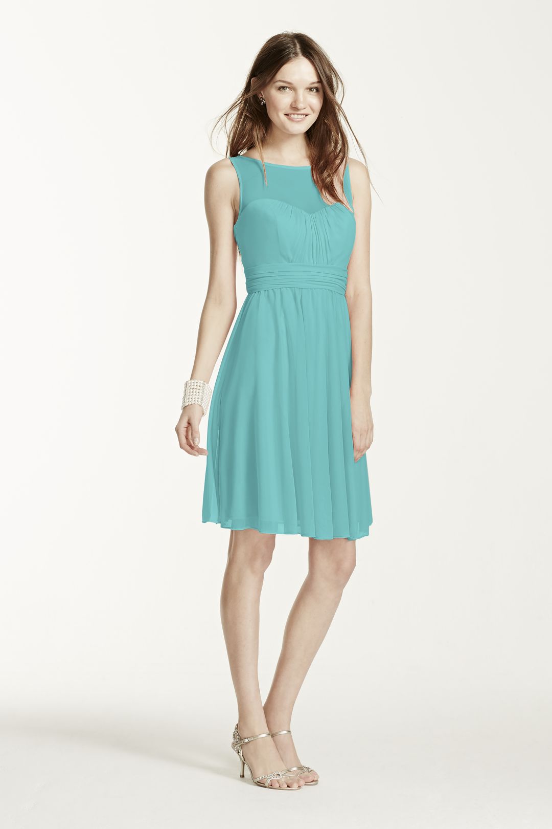 ¡Este hermoso vestido corto de dama te enamorará! Su lindo escote ilusión de mesh con espalda descubierta en V, se complementa con una cintura plisada y falda en línea A, que resaltarán tu silueta haciéndote lucir espectacular.