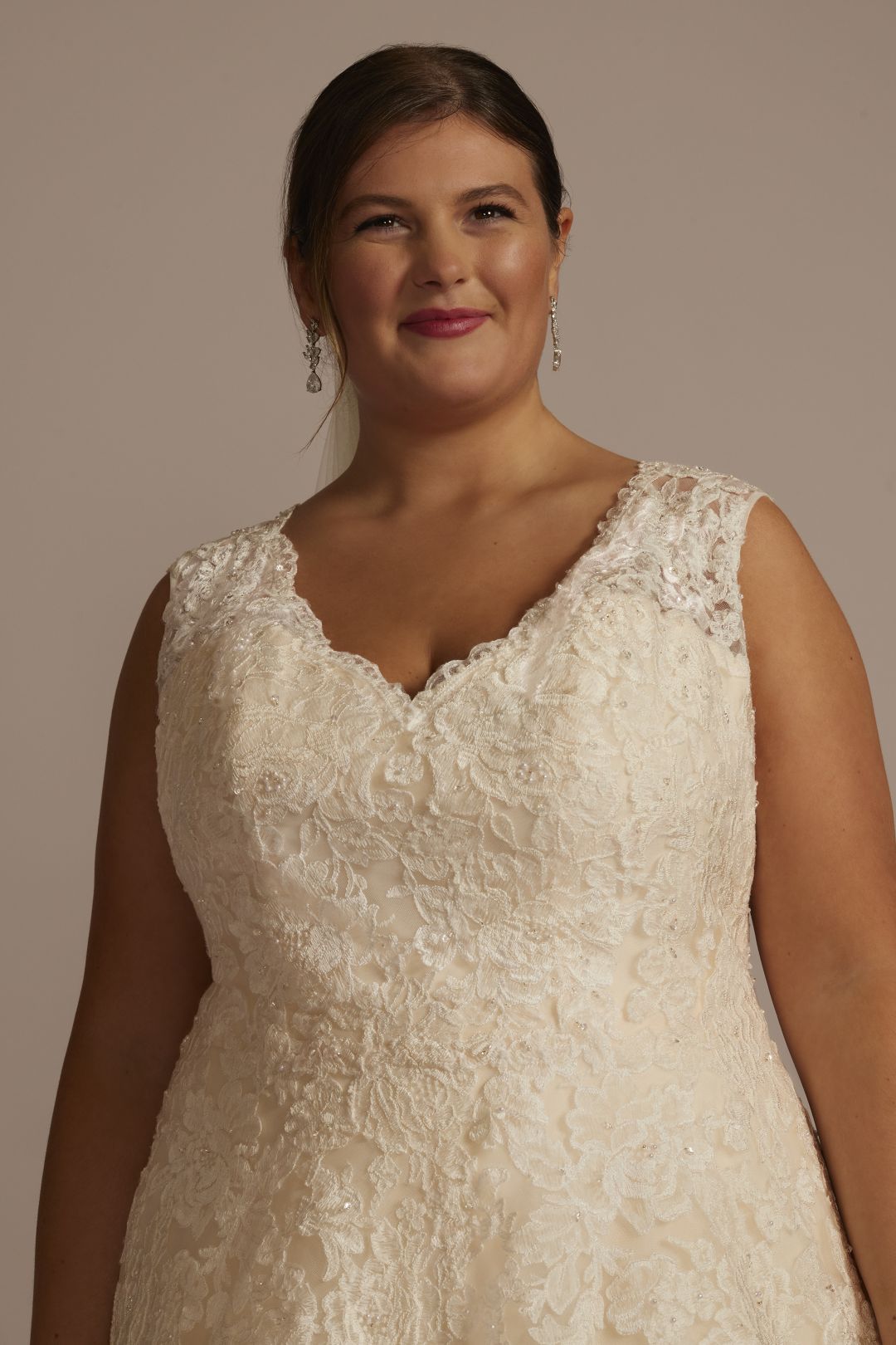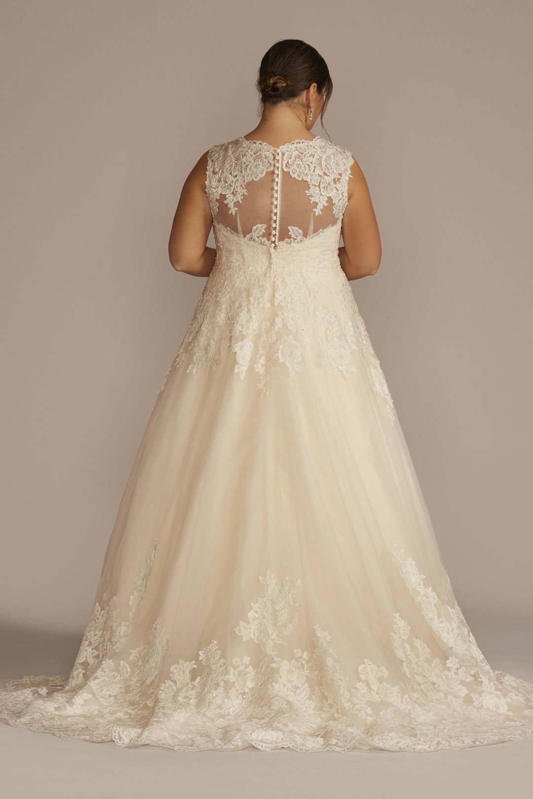 Este hermoso y clásico vestido de novia en línea A, cuenta con aplicaciones de pequeñas perlas y cristales que le dan un toque de brillo al corset. Su hermosa falda adornada con encaje 3D, se complementa con la delicada espalda ilusión con botones. Lucirás espectacular en tu gran día.