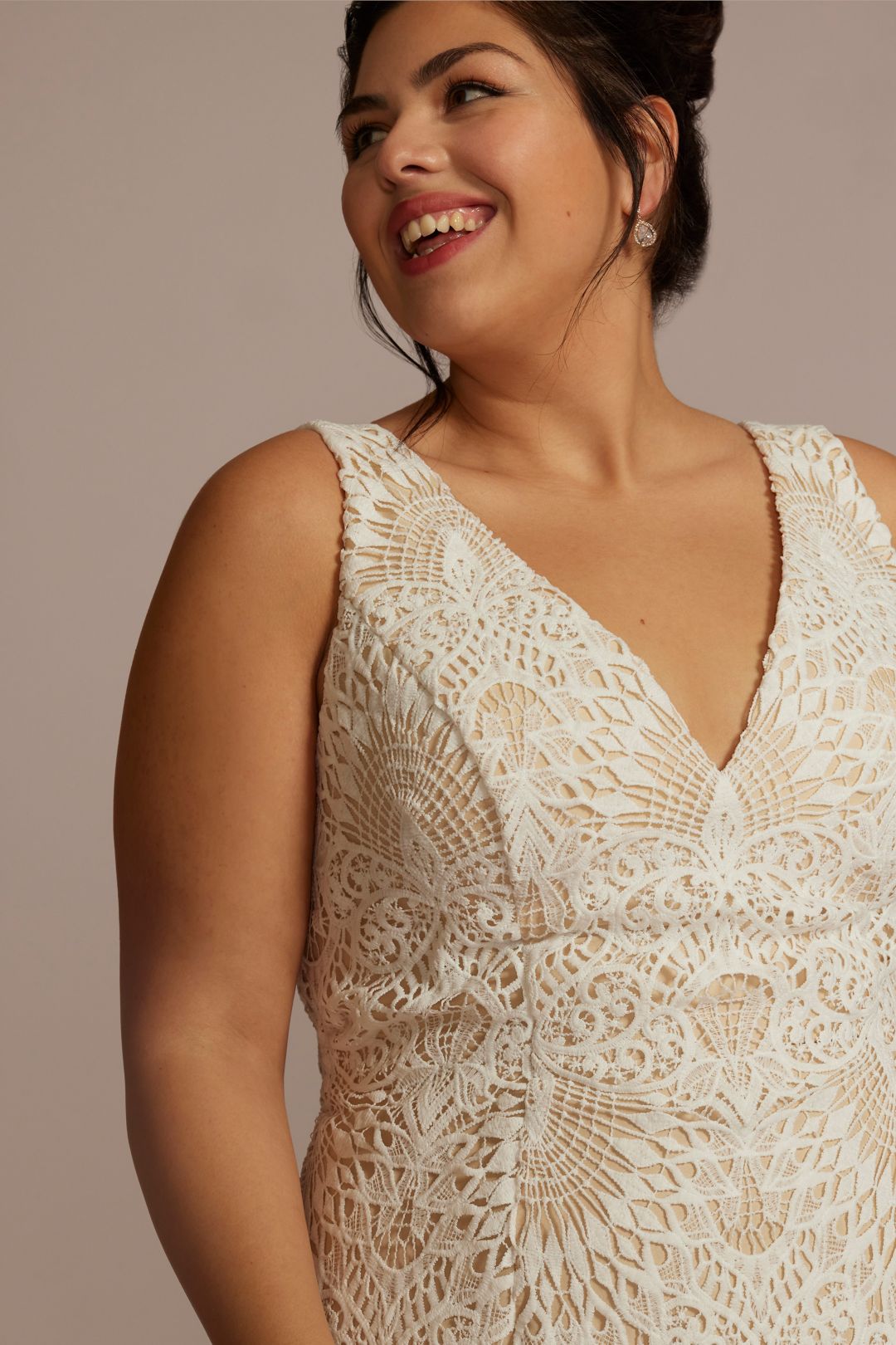 Esta vestido corto de encaje es perfecto para tu boda civil, tu despedida de soltera o cena de compromiso. Su escote en V alargará tu torso y favorecerá tu figura. Cuenta con un dobladillo de encaje festoneado que le dará un toque delicado a tu look.
