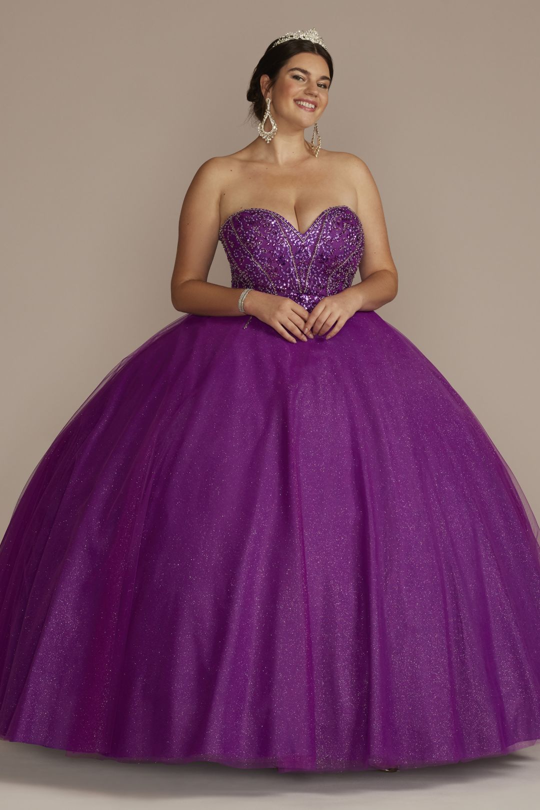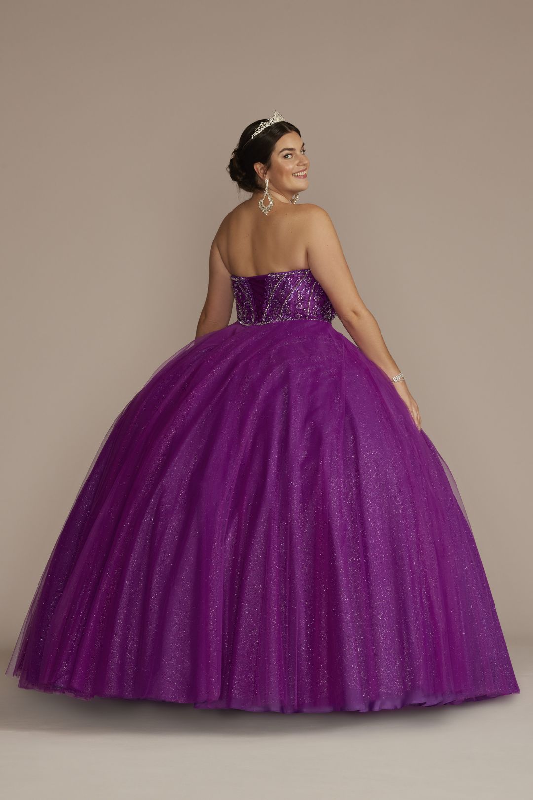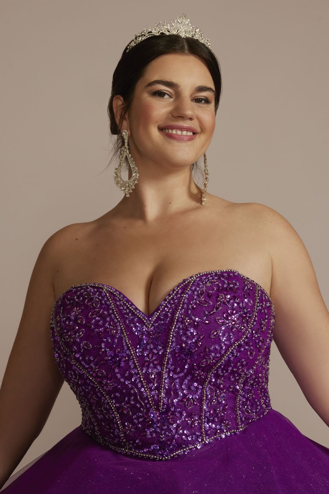 El escoteadornado, tipo corset, se asienta sobre una falda de vestido de gala amplia y se completa con un bolero extraíble para cambiar tu look