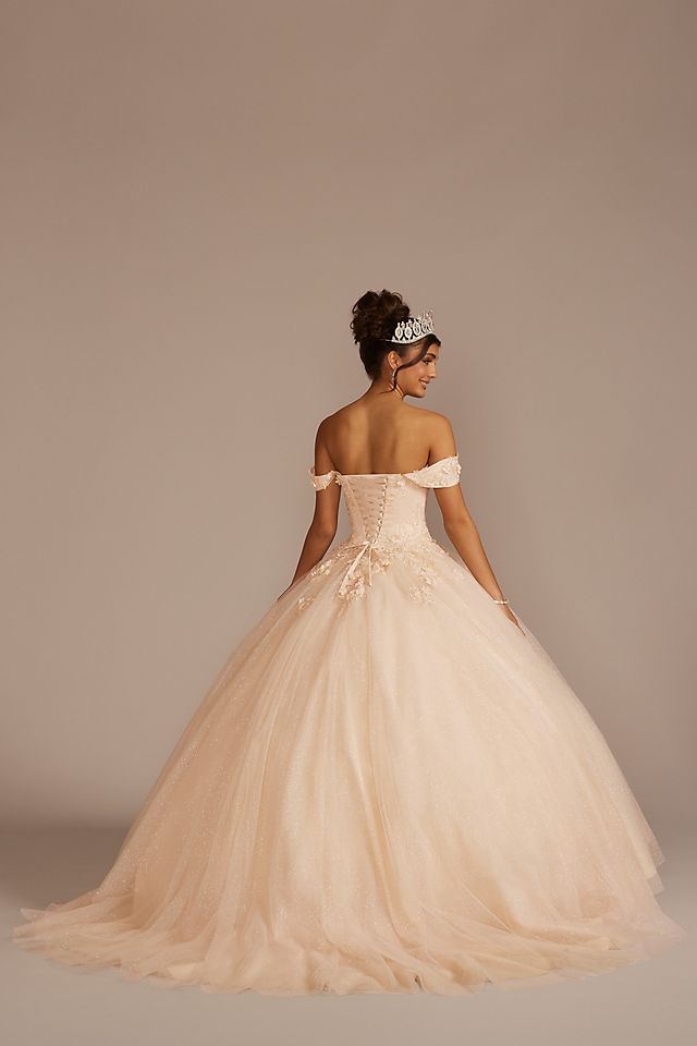 Haz de tus quince una fiesta inolvidable con este deslumbrante vestido de tres piezas. Sus hermosas aplicaciones florales en 3D y un corset ajustable lo hacen único. ¡Además podrás tener 2 looks en 1! Puedes usar la versión larga para la ceremonia religiosa y la corta para bailar cómoda toda la noche. Elíge entre color azul, rosa o champagne, ¡lucirás espectacular!