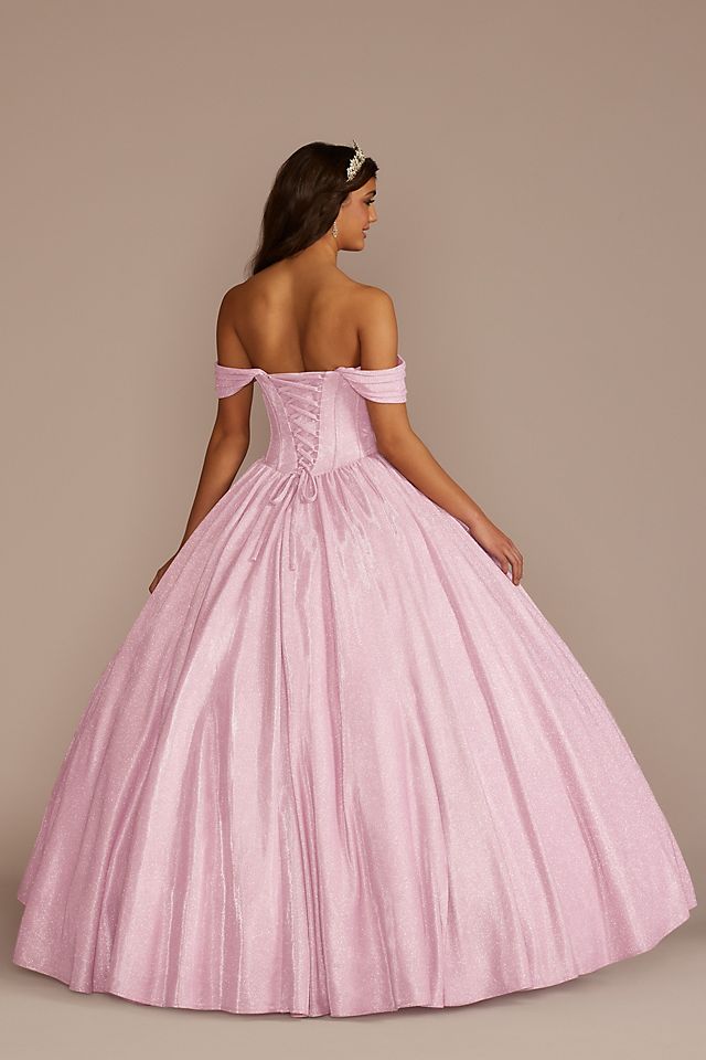 Vestido de quinceañera brillante con mangas removibles al hombro